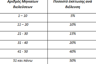 b. Πρόσθετη έκπτωση 10% για τους ηλεκτρονικούς χρήστες Οlympia-pass για όλες τις κατηγορίες οχημάτων