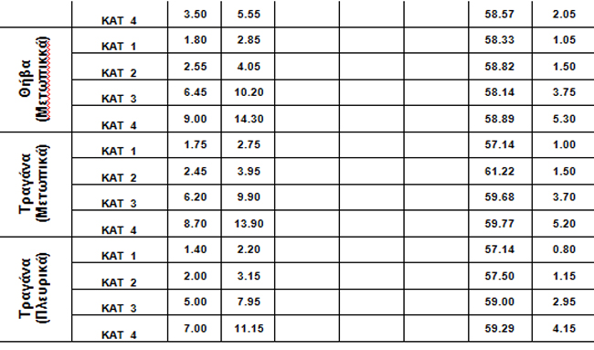 Για τον μετωπικό σταθμό Αιγινίου ο ως άνω πίνακας διαφοροποιείται ως ακολούθως: