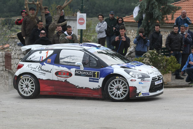 Η ελληνική άσφαλτος αποδείχθηκε ιδιαίτερα απαιτητική και.. γλιστερή και η επικινδυνότητα φάνηκε πως ήταν ατού για τους νεαρούς οδηγούς και ιδίως της Peugeot. Τελικά ο Breen με το ολοκαίνουργιο Peugeot 208 T16 R5 που έκανε και την παρθενική του εμφάνιση σε διεθνή αγώνα και μάλιστα στη χώρα μας βρέθηκε στην κορυφή αφήνοντας 14.7 δευτερόλεπτα πίσω του, τον Buffier με Citroen DS3. Άτυχος αποδείχτηκε ο Kevin Abbring, ο οποίος διακρίνεται για την ταχύτητά του στην άσφαλτο. Ο νεαρός Ολλανδός είχε διαρροή νερού στο «208» με αποτέλεσμα να εγκαταλε’ιψει στην 5η ειδική διαδρομή. Την τριάδα συμπλήρωσε ο Kajetanowicz με Ford Fiesta R5. Ο Πρωταθλητής Πολωνίας είχε σταθερή απόδοση σε όλη τη διάρκεια της ημέρας, και το γεγονός ότι βρίσκεται μόλις 0,3 δλ. πίσω από τον Bouffier αφήνει ανοιχτούς λογαριασμούς μεταξύ τους για το αυριανό χωμάτινο σκέλος.