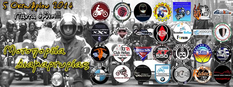 Την Κυριακή 5 Οκτωβρίου θα διεξαχθεί η μεγαλύτερη μοτοσικλετιστική πορεία στα χρονιά της Ελλάδος. Οι «Αγανακτισμένοι Μοτοσικλετιστές» που διοργανώνουν και την πορεία θα ξεκινήσουν στις 12 το μεσημέρι από το λιμάνι του Πειραιά (απέναντι από τον ηλεκτρικό σταθμό) και θα αναχωρήσουν μισή ώρα αργότερα για το Σύνταγμα.