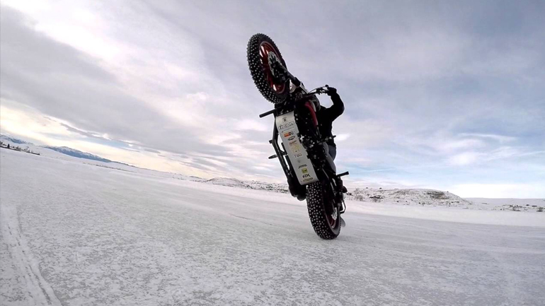 Bάζοντας καρφιά στα λάστιχα και τροποποιώντας μερικές Street Rod 750, μερικοί τυχεροί δημοσιογράφοι είχαν την ευκαιρία να οδηγήσουν στο όριο σε μια χιονισμένη πίστα! Δυστυχώς, δεν ήμασταν κι εμείς εκεί..