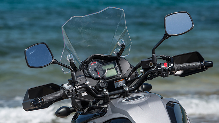 Καλοδεχούμενο και το σύστημα συνδυασμένων φρένων (CBS), όπως επίσης και τα αντίστοιχα Low RPM Assist και Easy Start, που είδαμε να εφαρμόζονται για πρώτη φορά στο SV 650 του 2016. Το πρώτο αναλαμβάνει να διατηρεί τις χαμηλές στροφές του κινητήρα στο επιθυμητό όριο, κάτι εξαιρετικά χρήσιμο στην αστική μετακίνηση, όπου απαιτείται συχνή χρήση συμπλέκτη και πολλά σταμάτα – ξεκίνα. Το δε δεύτερο, φροντίζει να πατάμε στιγμιαία τη μίζα και στη συνέχεια αναλαμβάνει αυτό να εκκινήσει τον κινητήρα. Δεν χρειάζεται δηλαδή να έχουμε το δάκτυλό μας στη μίζα έως ότου πάρει μπροστά η μοτοσυκλέτα. Πατάμε και αφήνουμε ακαριαία! Κατά τα λοιπά, έχουμε νέα και χειροκίνητα ρυθμιζόμενη ζελατίνα, νέους χρωματικούς συνδυασμούς (τρεις συνολικά), επανασχεδιασμένο μπροστινό μέρος, με το ρύγχος να μας θυμίζει τις DR 800 Big της δεκαετίας ’90, αλλά και στάνταρ προστατευτικές χούφτες και ποδιά, όλα στον στάνταρ εξοπλισμό.