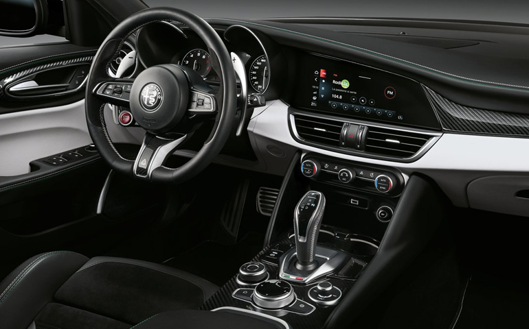 Active Torque Vectoring: Το ενεργό διαφορικό που διαχειρίζεται τη μετάδοση της ροπής στους πίσω τροχούς αποκτά πιο «επιθετική» συμπεριφορά μεταβάλλοντας ταχύτερα και με μεγαλύτερη ένταση την κατανομή ανάμεσα στον αριστερό και δεξί τροχό. Σε αυτή τη ρύθμιση η εμφάνιση υποστροφής μειώνεται έως και 17%, ενώ η συνολική ευελιξία του οχήματος βελτιώνεται έως και 20%. Σε αυτό συμβάλει και η απελευθέρωση της μέγιστης ισχύος του bi-Turbo V6 κινητήρα των 2,9 λίτρων απόδοσης 510 ίππων, ο οποίος πλέον δεν χαλιναγωγείται από το σύστημα ελέγχου πρόσφυσης, επιτρέποντας στον οδηγό να τον εκμεταλλευτεί με απόλυτη ελευθερία. Η ελευθερία που προσφέρει η ρύθμιση του συστήματος ESP σε συνδυασμό με το ενεργό διαφορικό δίνει την ευκαιρία στα μοντέλα Quadrifoglio να διαγράφουν εντυπωσιακές γωνίες με κορυφαία γραμμικότητα στην αίσθηση και τον οδηγό να απολαμβάνει εξαιρετική πληροφόρηση και απόλυτο έλεγχο.