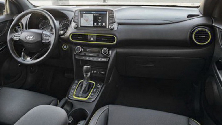 Σύμφωνα με τη Hyundai, το εσωτερικό του Kona είναι από τα πιο ευρύχωρα που μπορεί να συναντήσει κανείς στα compact crossover, με τα πίσω καθίσματα να αναδιπλώνονται πλήρως και το πορτμπαγκάζ να έχει χωρητικότητα 361 λίτρων. Παρότι δεν δόθηκαν στη δημοσιότητα φωτογραφίες από την καμπίνα, έγινε γνωστό πως φέρει οθόνη 5, 7 και 8 ιντσών, ανάλογα την έκδοση, συμβατή με Android Auto και Apple CarPlay, σύστημα ασύρματης φόρτισης των smartphones, 4G telematics και νέας γενιάς head-up display.