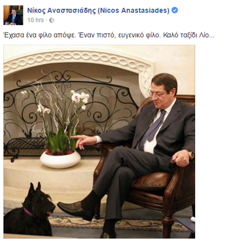Έφυγε από τη ζωή ο Λίο, ο αγαπημένος σκύλος του προέδρου της Κυπριακής Δημοκρατίας Νίκου Αναστασιάδη.