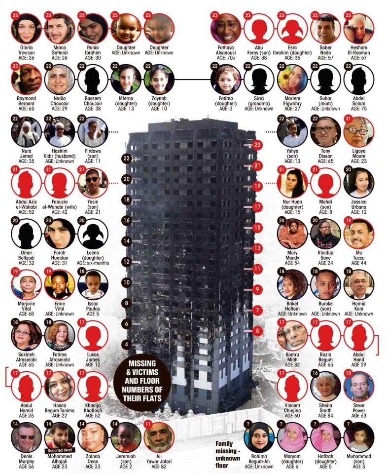 Σήμερα η εφημερίδα «Sun» δημοσίευσε κατάλογο με τα ονόματα 65 ανθρώπων που αγνοούνται και ενδεχομένως είναι νεκροί.