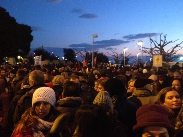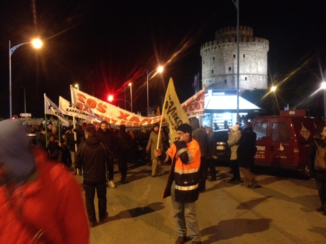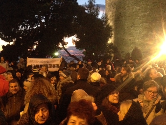 Πορεία συμπαράστασης στον σκληρό γύρο των διαπραγματεύσεων που ξεκινά η κυβέρνηση με τους Ευρωπαίους εταίρους μας πραγματοποιούν αυτή την ώρα χιλιάδες Θεσσαλονικείς, οι οποίοι νωρίτερα είχαν συγκεντρωθεί στον Λευκό Πύργο.