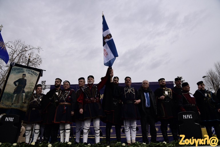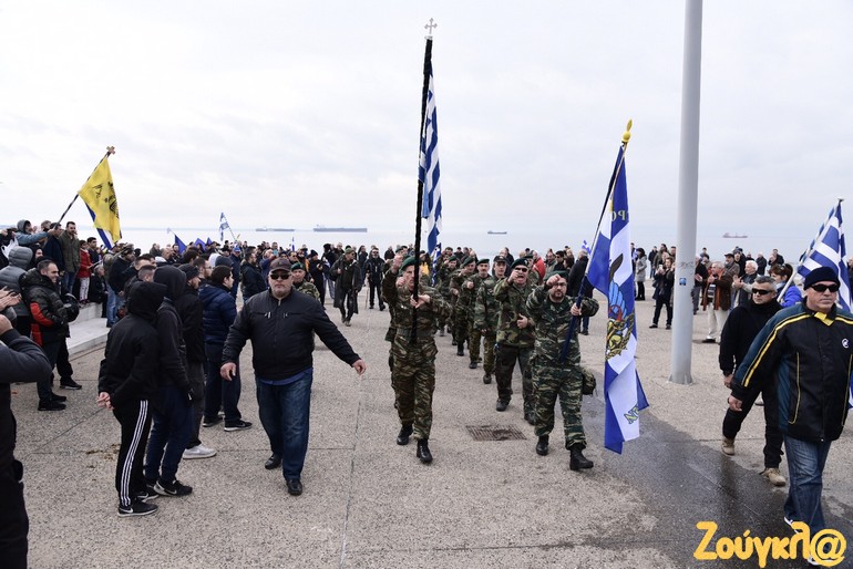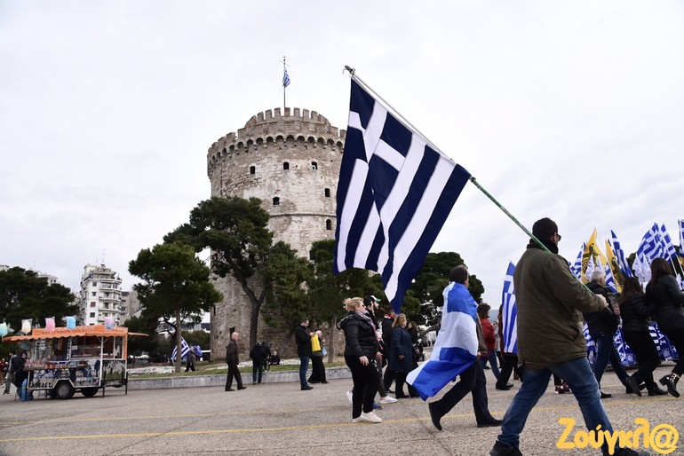 Την ίδια ώρα, στην πλατεία της Καμάρας, ομάδες αντιεξουσιαστών πραγματοποίησαν… αντισυγκέντρωση… Δεν έλειψαν μάλιστα τα επεισόδια, καθώς περίπου δέκα κουκουλοφόροι επιτέθηκαν σε δύο κορίτσια περίπου 15 ετών, τα οποία κρατούσαν ελληνικές σημαίες και κατευθύνονταν στον χώρο του συλλαλητηρίου. Οι άγνωστοι πήραν τις σημαίες και τις έσπασαν.