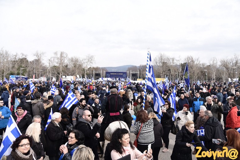 Οι διαδηλωτές κάνουν λόγο για συμμετοχή 500.000 ανθρώπων στο συλλαλητήριο.