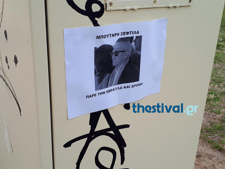 Λίγο πριν το συλλαλητήριο άγνωστοι κόλλησαν σε τοίχους και απορριματικούς κάδους στην πλατεία του Λευκού Πύργου, φυλλάδια με συνθήματα εναντίον του δήμαρχου Θεσσαλονίκης, Γιάννη Μπουτάρη.
