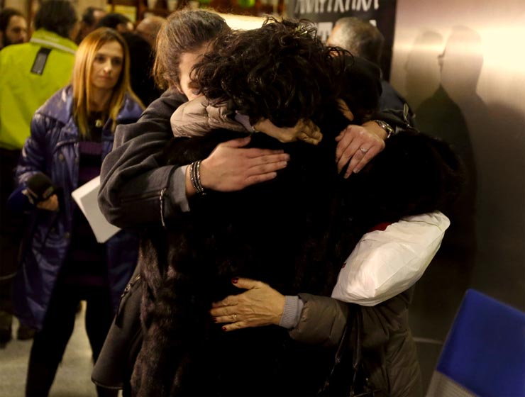 Τα συναισθήματα χαράς περίσσευαν στην αίθουσα υποδοχής. Ωστόσο, δεκάδες συγγενείς αγνοουμένων έχουν βυθιστεί στη θλίψη, καθώς ούτε σήμερα κατόρθωσαν να πληροφορηθούν κάποιο νεώτερο. Με τα ολιγοστά ψήγματα υπομονής που διέθεταν, παρουσίασαν στις κάμερες φωτογραφίες των δικών τους ανθρώπων, απευθύνοντας έκκληση για βοήθεια.