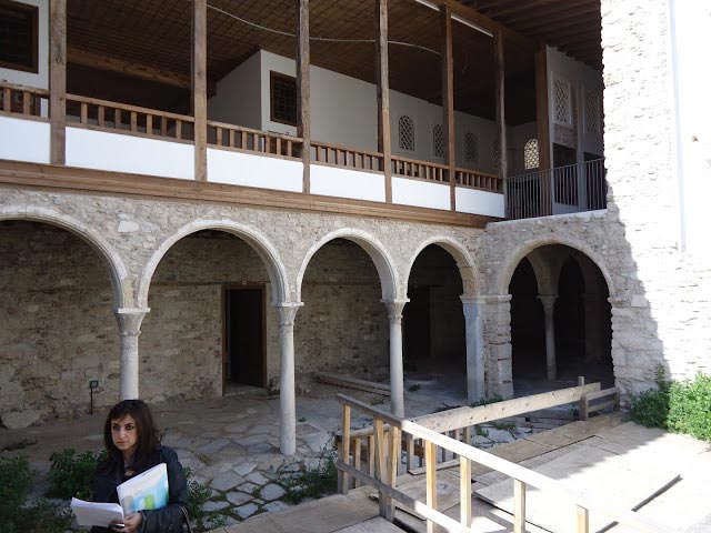 Η κεντρική αυλή θα περιλαμβάνει ένα μικρό υπαίθριο αναψυκτήριο κάτω από τα δέντρα, με σκοπό ο επισκέπτης να μπορεί να ξεκουράζεται, κυρίως όμως να «ενσωματώνεται» στην εποχή που καλείται να γνωρίσει μέσα από μεσαιωνικά επιτραπέζια παιχνίδια. Στην ίδια αυλή θα είναι ορατό το τμήμα του υστερορωμαϊκού τείχους που βρέθηκε στις ανασκαφές, ενώ η πίσω αυλή με τη μαγευτική θέα στις παρυφές της Ακρόπολης δίνει τη δυνατότητα φιλοξενίας πολλαπλών εκδηλώσεων.