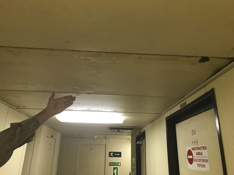 «Δεν υπάρχουν άλλα καύσιμα για την γεννήτριά μας. Θα διαρκέσουν ίσως δύο μέρες ακόμα και χωρίς ηλεκτρικό το πλοίο θα βρεθεί εκτός ελέγχου». Χαρακτηριστικές είναι οι φωτογραφίες που δείχνουν όχι μόνο τα τρόφιμα που σαπίζουν, αλλά και την κακή κατάσταση στο εσωτερικό του πλοίου
