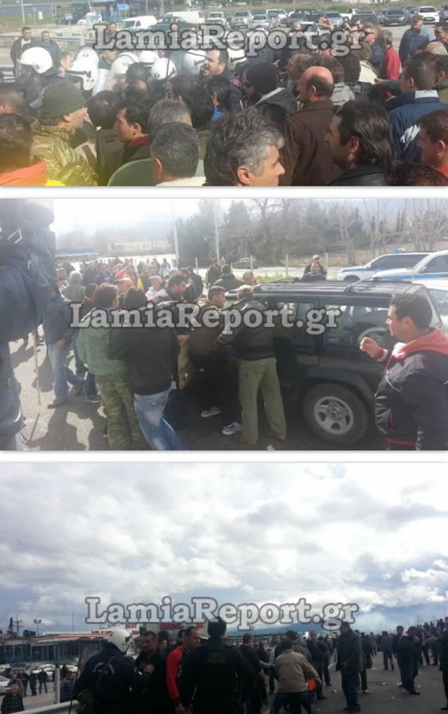 Όταν οι αγρότες επιχείρησαν να αποκλείσουν την εθνική οδό, υπήρξε ένταση και αντιπαράθεση με την αστυνομία. Η κατάσταση βγήκε εκτός ελέγχου και για λίγη ώρα η εθνική μετατράπηκε σε πεδίο μάχης.