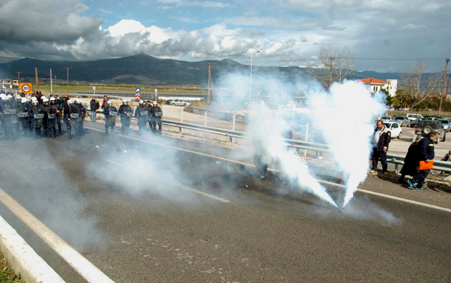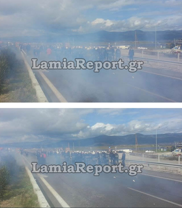 Συμπλοκές σημειώθηκαν το μεσημέρι μεταξύ των αγροτών και των ΜΑΤ στην εθνική οδό Αθηνών – Λαμίας, στο ύψος της Ανθήλης.