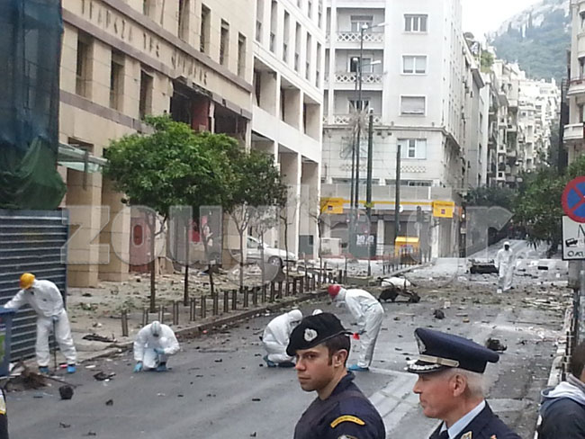 Ένα αυτοκίνητο μάρκας Nissan, το οποίο είχε κλαπεί στις 5 Απριλίου από την Καισαριανή, φορτωμένο με 75 κιλά αμμωνιοδυναμίτιδα ανατινάχθηκε κοντά στην Τράπεζα της Ελλάδος, επί της οδού Αμερικής 3, ενώ το ωστικό κύμα που προκλήθηκε από την έκρηξη επέφερε ζημιές σε ακτίνα εκατοντάδων μέτρων.