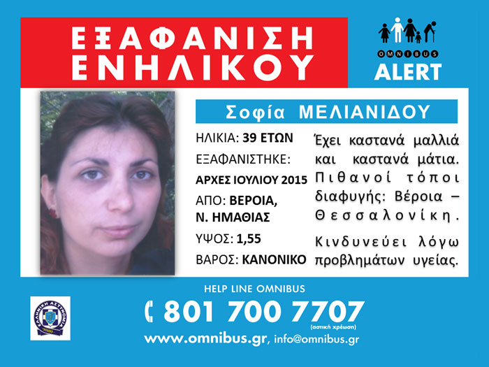 Παρακαλείται οποιοσδήποτε γνωρίζει κάτι για την υπόθεση να επικοινωνήσει με το τοπικό Α.Τ. ή με τη γραμμή του Omnibus Alert.