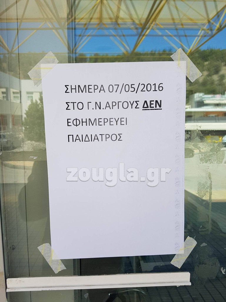 Όπως καταγγέλει ο Θανάσης Φάνης από το Ναύπλιο και διαπίστωσε και το zougla.gr, στη… μισή Πελοπόννησο δεν υπάρχει διαθέσιμος παιδίατρος, για σήμερα, Σάββατο, καθώς δεν εφημερεύει κανείς ούτε στο Ναύπλιο, ούτε στο Άργος ούτε στην Κόρινθο! Η απάντηση που δίνεται από τους υπεύθυνους στον πατέρα είναι να πάει το παιδί του – που παρουσιάζει υψηλό πυρετό- στην… Καλαμάτα!