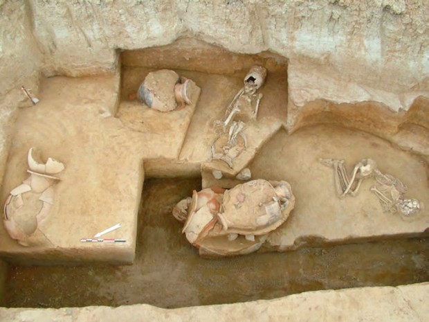 Οι 80 νεκροί είναι τοποθετημένοι σε παράταξη και φέρουν σιδηρά δεσμά στα χέρια. Στην πλειονότητά τους δεμένοι πισθάγκωνα με αλυσίδες, τους οποίους οι αρχαιολόγοι συχνά τους αναφέρουν ως «οι αιχμάλωτοι του Φαλήρου». Κάποιοι σκελετοί βρέθηκαν μέσα σε πιθάρια και ανήκουν σε βρέφη και παιδιά. Περίπου 5% είναι αποτεφρωμένοι, ενώ ένας σκελετός βρέθηκε μέσα σε ξύλινη βάρκα που χρησιμοποιήθηκε ως φέρετρο.
