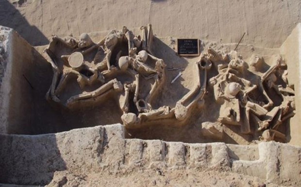 Ο τελευταίος νεκρός που αποκαλύφθηκε στις 31 Μαρτίου, έχει δεμένα πόδια, πράγμα που ίσως συνδέει το πολυάνδριο της Εσπλανάδας με τους αποτυμπανισμένους που αποκαλύφθηκαν έναν αιώνα νωρίτερα, σύμφωνα με την κα Χρυσουλάκη.
