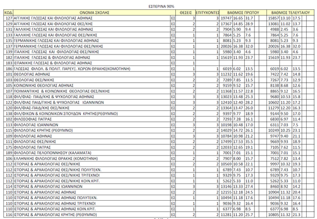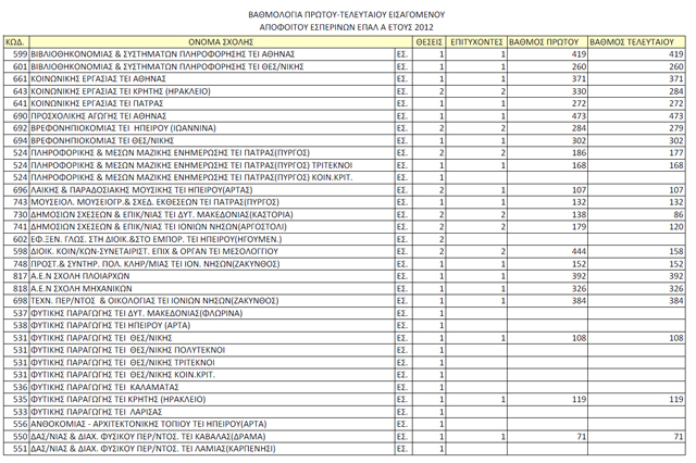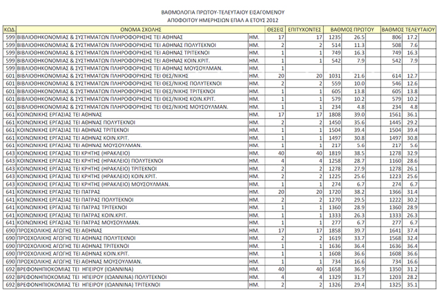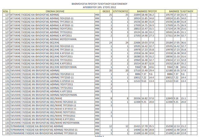 Πατήστε εδώ για να δείτε τη βαθμολογία πρώτου – τελευταίου εισαγόμενου αποφοίτου 10% για το 2012
