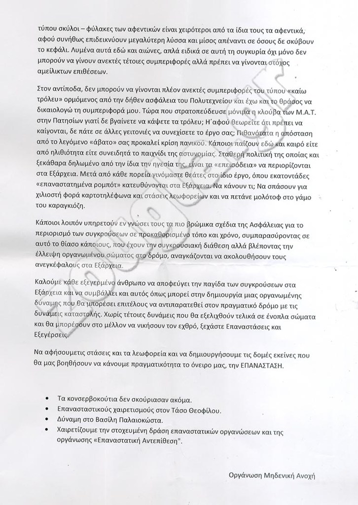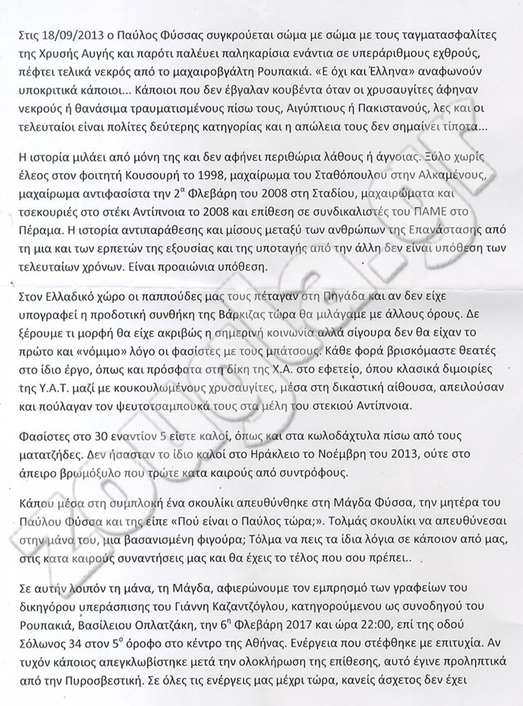 Η τρισέλιδη ανάληψη ευθύνης, που έφτασε στα γραφεία του zougla.gr το πρωί της Πέμπτης, αναφέρει: