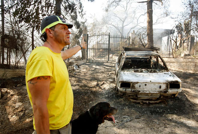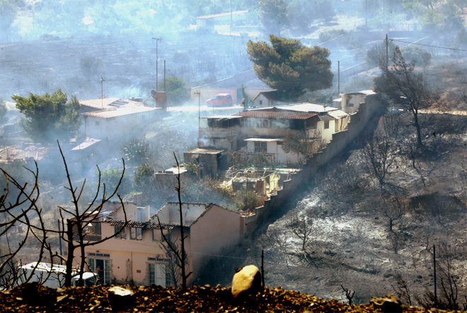 Εικόνες καταστροφής καταγράφονται στην περιοχή του Μαραθώνα, λόγω της φωτιάς που εκδηλώθηκε το μεσημέρι της Δευτέρας και έλαβε τεράστιες διαστάσεις, με αποτέλεσμα να εκκενωθεί ο οικισμός Αύρα και να καούν σπίτια.