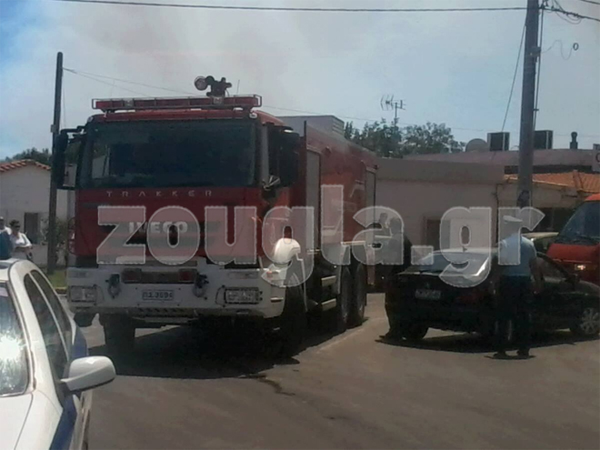 Η φωτιά ξεκίνησε όταν τζιπ του λιμενικού προσέκρουσε σε κολώνα της ΔΕΗ και ανεφλέγη.