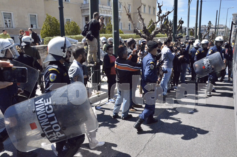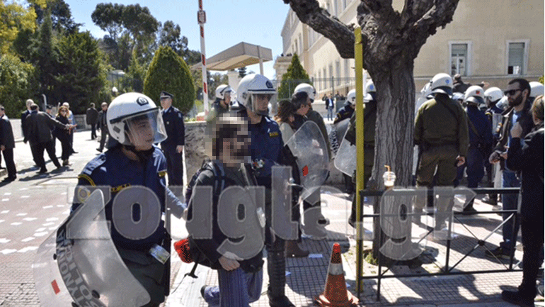 Ομάδα αντιεξουσιαστών που συμμετείχαν στην κατάληψη της Πρυτανείας του Πανεπιστημίου Αθηνών εισέβαλαν το μεσημέρι της Τετάρτης στο προαύλιο της Βουλής, φωνάζοντας συνθήματα.