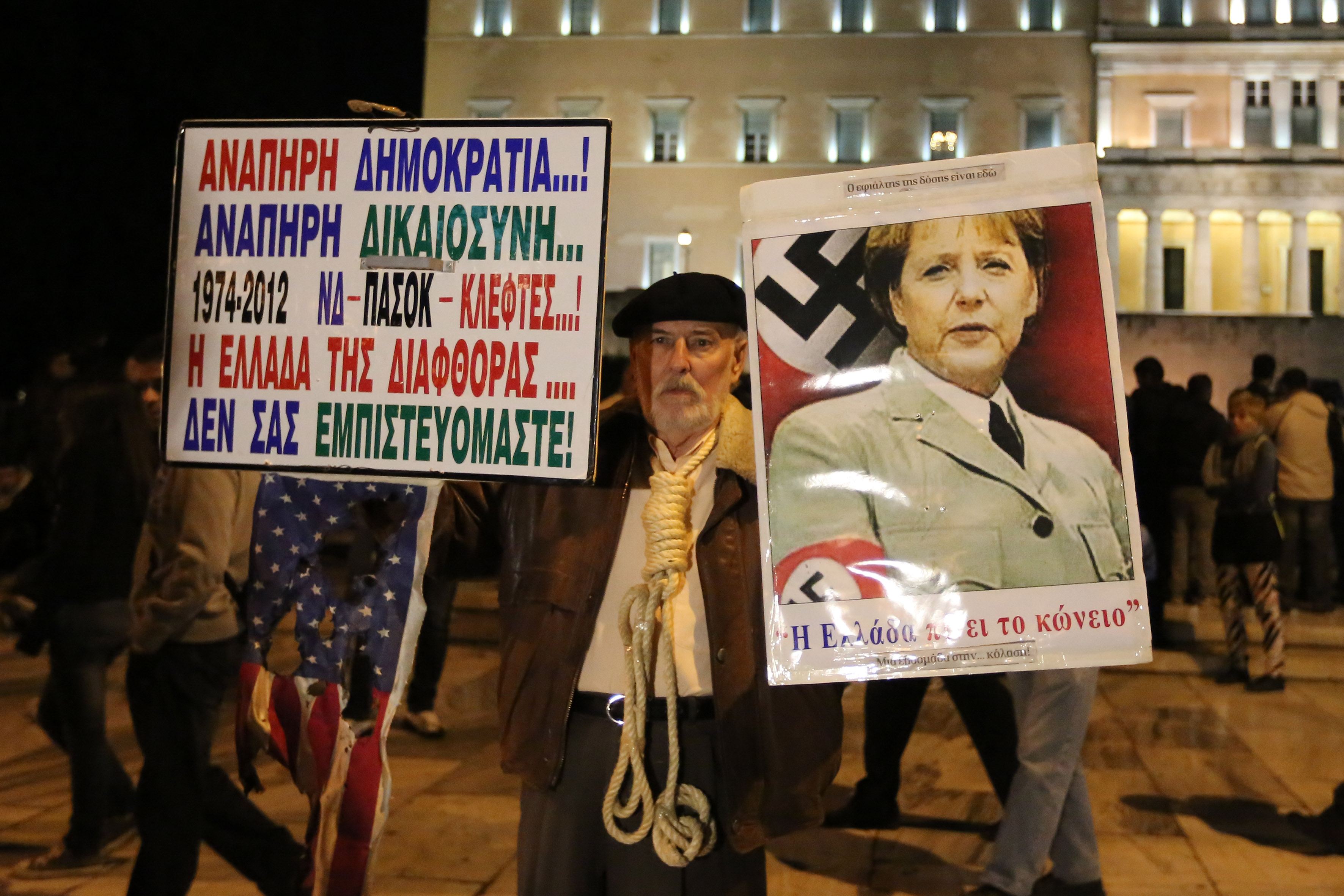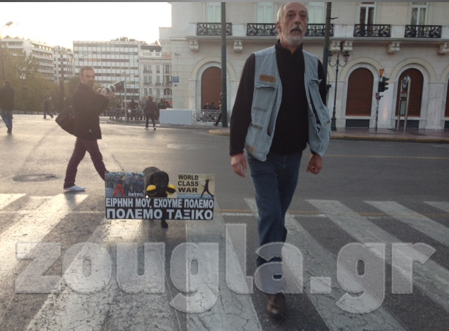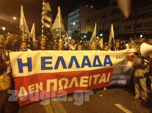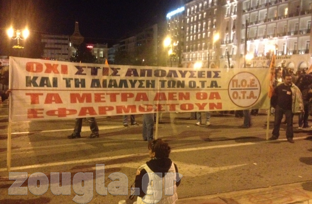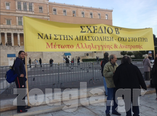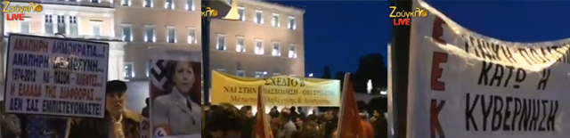 (Πανό στη Λ. Αμαλίας από διαδηλωτές)