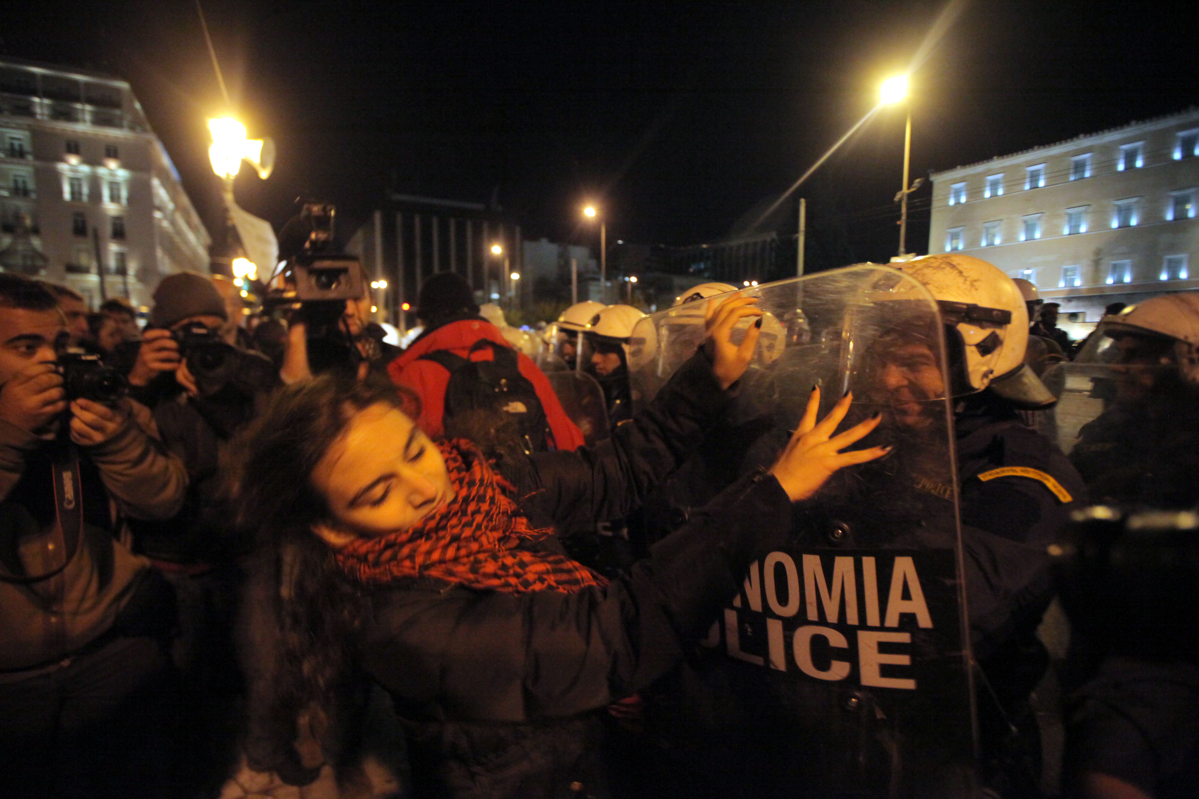 (Η αστυνομία απέναντι από τους διαδηλωτές)