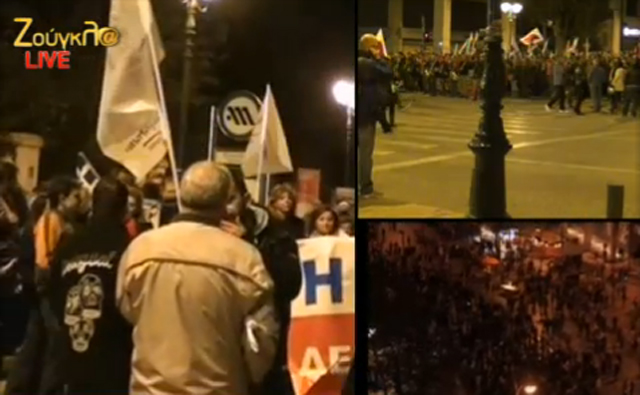 Περισσότεροι από 2.000 άνθρωποι βρέθηκαν στο Σύνταγμα, ενώ 8.000 μέλη του ΠΑΜΕ πραγματοποίησαν πορεία προς τη Βουλή.