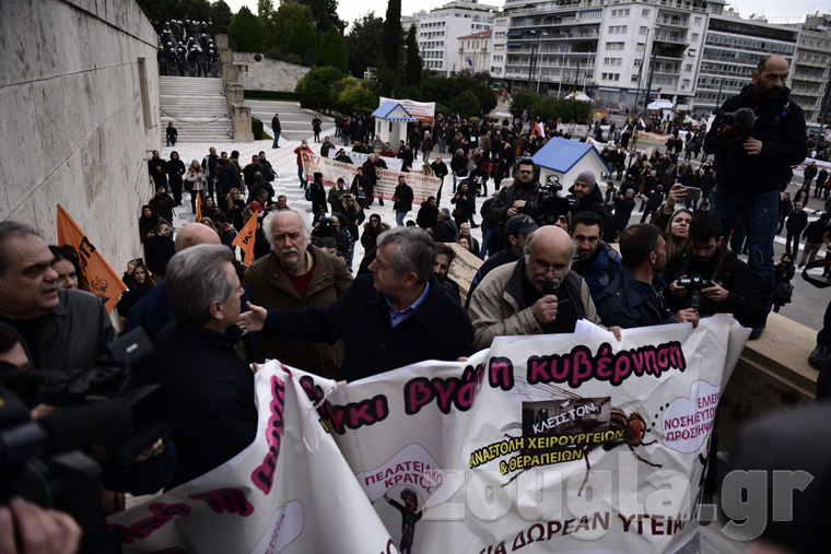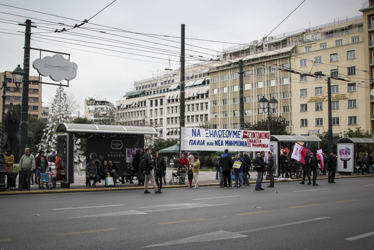 Στις 13.35, οι διαδηλωτές του μπλόκου της ΑΔΕΔΥ ξεκίνησαν πορεία από κεντρικούς δρόμους της πρωτεύουσας. Στις 14.00 η κεφαλή της πορείας έφτασε στη Βουλή όπου ορισμένοι διαδηλωτές επιχείρησαν από τα σκαλιά να μεταβούν στον αύλειο χώρο. Την προσπάθειά τους απέτρεψαν παρατεταγμένες δυνάμεις των ΜΑΤ.