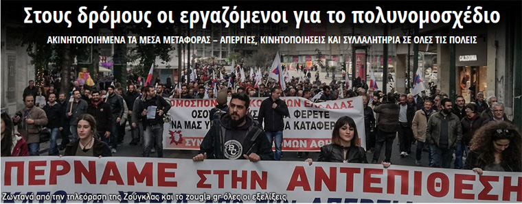 Σε ανακοινώσεις τους οι εργαζόμενοι στα ΜΜΜ καταγγέλλουν, μεταξύ άλλων, πως το «εκτρωματικό πολυνομοσχέδιο διαλύει τα τελευταία υπολείμματα κοινωνικού κράτους, που είχαν διασωθεί από την 7χρονη μνημονιακή θύελλα και επιδιώκει τον περιορισμό του συνταγματικά κατοχυρωμένου δικαιώματος της απεργίας» και καλούν τους εργαζόμενους να συμμετάσχουν δυναμικά στις πορείες διαμαρτυρίας, «διατρανώνοντας την αντίθεσή τους στην αντιλαϊκή πολιτική της κυβέρνησης».