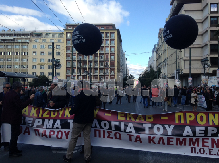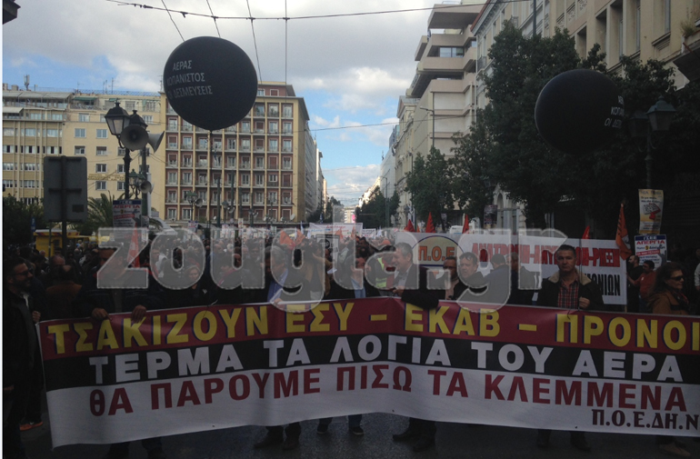 Η κεντρική απεργιακή συγκέντρωση ξεκίνησε στις 11:00 το πρωί στην πλατεία Κλαυθμώνος, ενώ το ΠΑΜΕ κάλεσε τους εργαζόμενους μία ώρα νωρίτερα στην πλατεία Ομονοίας.