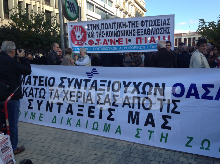«Μετά από πέντε χρόνια μνημονιακής πολιτικής που είχε ως αποτέλεσμα την απομείωση των συντάξεων από 20% έως και 55%, σήμερα οι εργαζόμενοι, οι συνταξιούχοι και ιδιαίτερα οι νέοι/ες διεκδικούν να δρομολογηθεί μια λύση στο Ασφαλιστικό που στο επίκεντρό της θα είναι ο καθολικός και αναδιανεμητικός χαρακτήρας της ασφάλισης, η προστασία των δικαιωμάτων, αλλά και η διαμόρφωση ενός πλαισίου που θα οδηγεί σε ένα βιώσιμο και κοινωνικά δίκαιο Ασφαλιστικό Σύστημα.