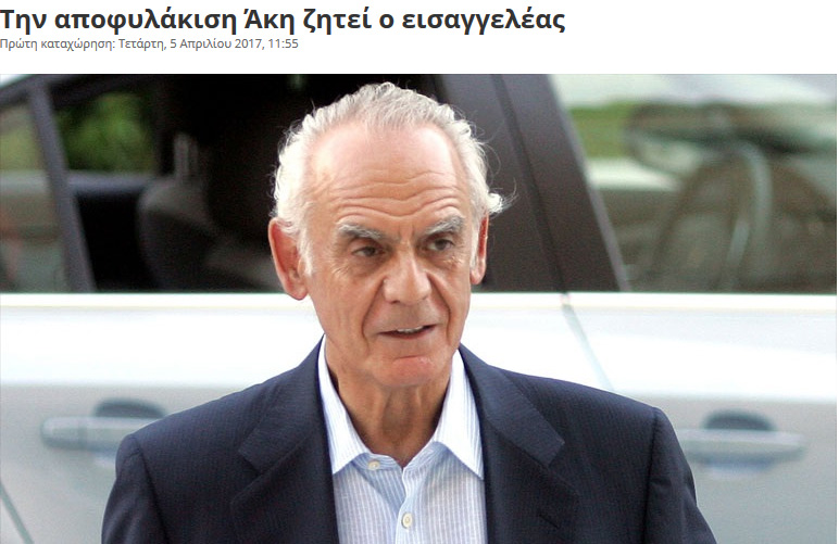 «Προκύπτουν σοβαρές ενδείξεις ότι επίκειται βλάβη της υγείας του λόγω και του προχωρημένου της ηλικίας του» ανέφερε η εισαγγελέας.