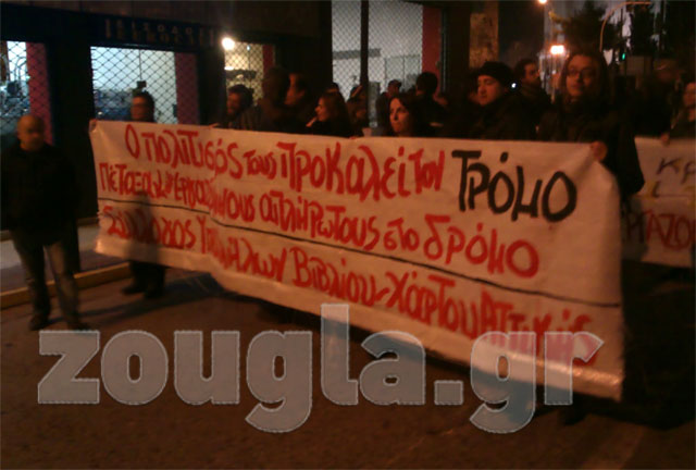 Δυνάμεις των ΜΑΤ βρίσκονται στο σημείο όπου έχουν συγκεντρωθεί περί τους 150 διαδηλωτές. Οι διαδηλωτές περί τις 21.15 ξεκίνησαν πορεία από την Πειραιώς μέχρι και την οδό Περσεφόνης από όπου κατευθύνθηκαν στον σταθμό του ΜΕΤΡΟ στον Κεραμεικό για να διαλυθούν.