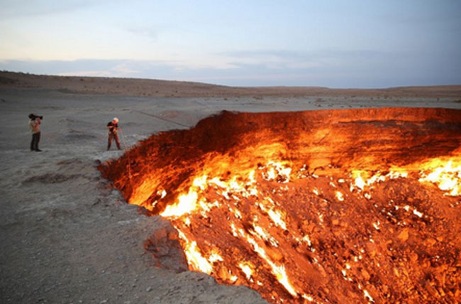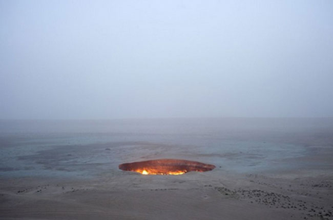 Ο κρατήρας Νταρβάτζα, που δημιουργήθηκε το 1971, καίει ακόμα και σήμερα, δημιουργώντας μια μοναδική εικόνα σε ένα κατά τα άλλα άγονο τοπίο.