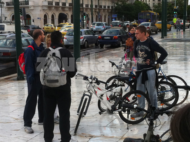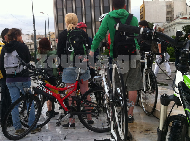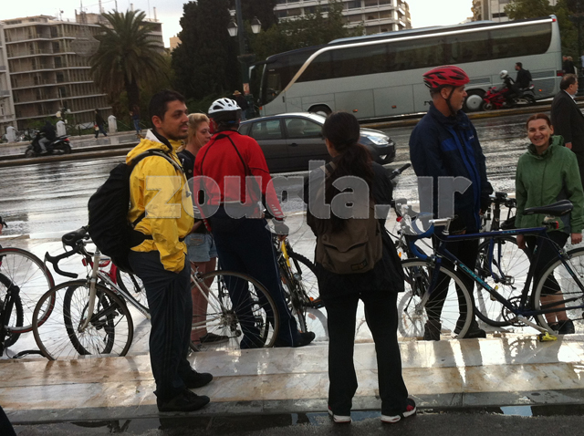 Λόγω των δυσμενών καιρικών συνθηκών οι ποδηλάτες που προέβησαν σε διαμαρτυρία δεν ήταν πολλοί, ενώ κατήγγειλαν πως δέχθηκαν οχλήσεις από την αστυνομία να απομακρυνθούν «από το μνημείο». Όπως ανέφεραν στη zougla.gr, εκείνοι δεν ήταν κοντά στο μνημείο, αλλά στο πεζοδρόμιο από την πάνω πλευρά της λεωφόρου Αμαλίας. Την αναφορά τους επιβεβαιώνουν και οι φωτογραφίες που ακολουθούν.