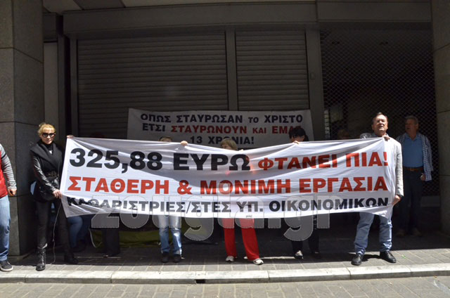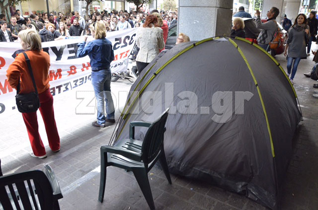 Οι φοιτητές εξέφρασαν την αλληλεγγύη τους και στις καθαρίστριες του υπουργείου, οι οποίες επέστρεψαν και έστησαν τις σκηνές τους συνεχίζοντας τις κινητοποιήσεις τους.