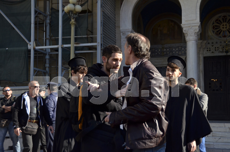 Η πρωτότυπη διαμαρτυρία πραγματοποιείται στη Μητρόπολη στο κέντρο της Αθήνας, ως ένδειξη διαμαρτυρίας για τις «δηλώσεις μίσους» όπως αναφέρουν οι διαδηλωτές στις οποίες έχουν προβεί τις τελευταίες ημέρες κληρικοί.
