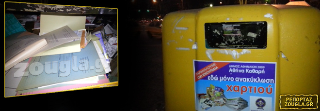 Αυτό, ωστόσο, που προκαλεί την μεγαλύτερη εντύπωση είναι ότι η «αποθήκευση» των αναλλοίωτων δικογράφων στον κάδο ανακύκλωσης δεν είναι παροδικό φαινόμενο. Δηλαδή κάποιοι συνηθίζουν να πετούν τα έγγραφα χωρίς καν να τα καταστρέφουν. Αλλιώς δεν μπορεί να δικαιολογηθεί το γεγονός ότι το zougla.gr εντόπισε έγγραφα δικογραφιών τόσο χθες όσο και σήμερα!