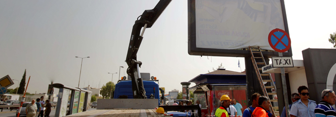 Από τον Απρίλιο του 2010, το Υπουργείο Υποδομών, σε συνεργασία με το Υπουργείο Προστασίας του Πολίτη, είχε ξεκινήσει την αποκαθήλωση όλων των παράνομων διαφημιστικών πινακίδων που υπάρχουν διάσπαρτες στους δρόμους της Αττικής. Διαδικασία η οποία, όμως, εμφάνισε μεγάλη κωλυσιεργία, εξαιτίας της οποίας το θέμα παραπέμφθηκε στη Δικαιοσύνη.