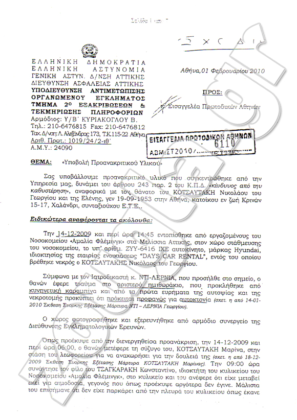 Την ίδια στιγμή, σήμερα, η zougla.gr αποκαλύπτει το διαβιβαστικό της Ασφάλειας που περιγράφει καρέ-καρέ τις τελευταίες στιγμές του αυτόχειρα.