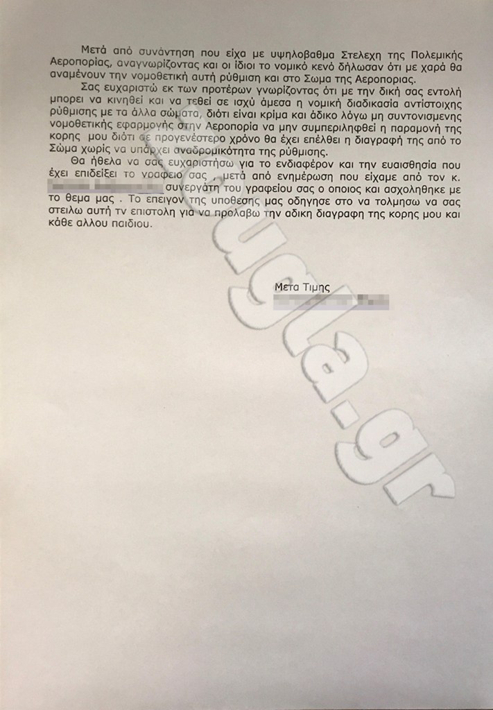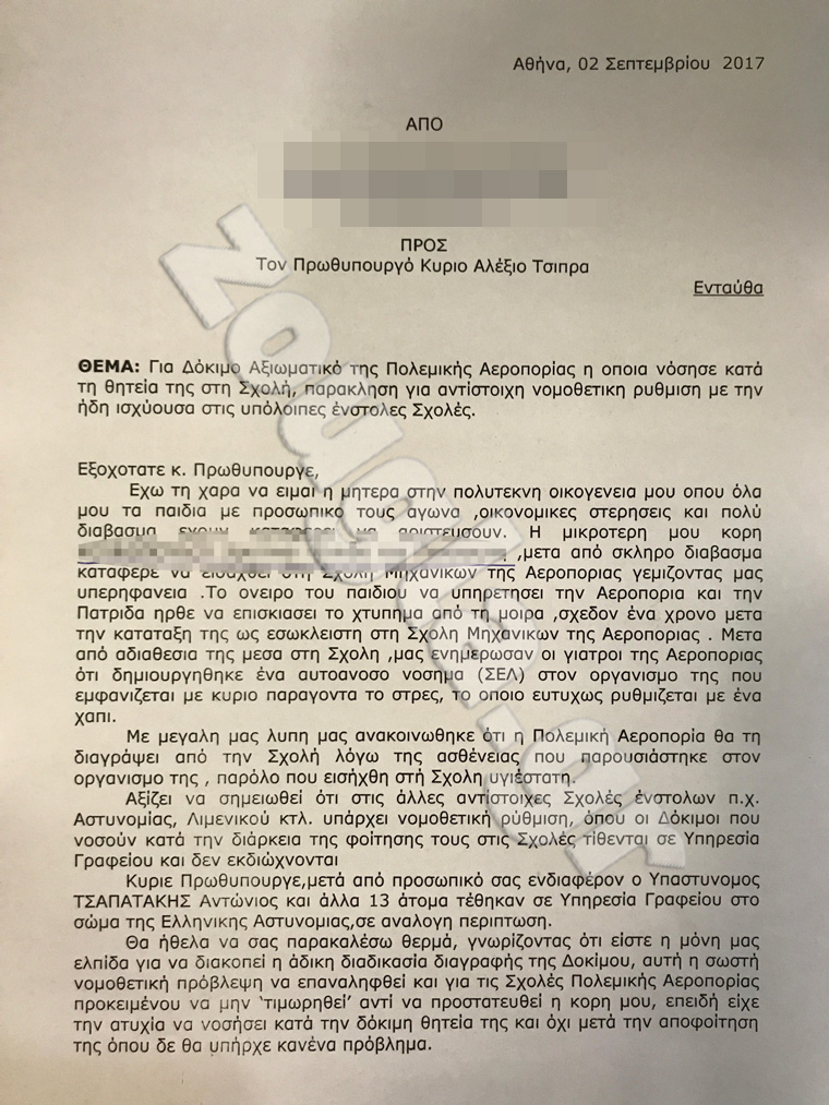 Το θέμα εξετάζεται από το υπουργείο Εθνικής Άμυνας, ενώ ενημερώθηκε και το Γραφείο του Πρωθυπουργού μέσω επιστολής που απέστειλε η μητέρα της σπουδάστριας, την οποία εξασφάλισε το zougla.gr και παραθέτει παρακάτω: