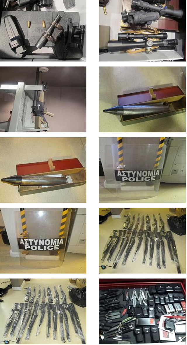 • μεγάλος αριθμός κινητών τηλεφώνων, καρτών μνήμης και SIM, βιντεοκαμερών, φωτογραφικών μηχανών, συσκευών επικοινωνίας και ασυρμάτων.