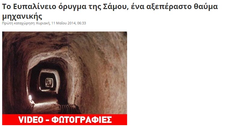 Eπισκέψιμο σε ολόκληρο το μήκος του (1.036 μέτρα σκαμμένα μέσα στο βουνό που δεσπόζει πάνω από το Πυθαγόρειο της Σάμου), θα είναι στο προσεχές διάστημα το Ευπαλίνειο Όρυγμα, ένα από τα σπουδαιότερα παγκοσμίως, μνημεία ανθρώπινης δεξιοτεχνίας και κατασκευαστικής ικανότητας. Γι’ αυτό και από το 1992 έχει περιληφθεί στον κατάλογο των μνημείων παγκόσμιας πολιτιστικής κληρονομιάς της UNESCO.