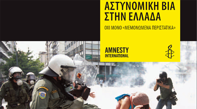 Η έκθεση «Αστυνομική Βία στην Ελλάδα: Όχι μόνο μεμονωμένα Περιστατικά» που παρουσιάστηκε σήμερα σε συνέντευξη Τύπου από τη Διεθνή Αμνηστία σε συνεργασία με την Πανελλήνια Ομοσπονδία Ενώσεων Συντακτών (ΠΟΕΣΥ) στην ΕΣΗΕΑ, καλύπτει τις ανησυχίες της διεθνούς οργάνωσης για την αστυνόμευση στην Ελλάδα τα τελευταία δέκα χρόνια μέχρι τον Απρίλιο του 2012 και όπως αναφέρεται, «τεκμηριώνει παραβιάσεις ανθρωπίνων δικαιωμάτων που διαπράχθηκαν από μέλη των σωμάτων ασφαλείας και την ανικανότητα ή την απροθυμία της αστυνομίας και των δικαστικών αρχών να οδηγήσουν τους υπεύθυνους σε λογοδοσία».
