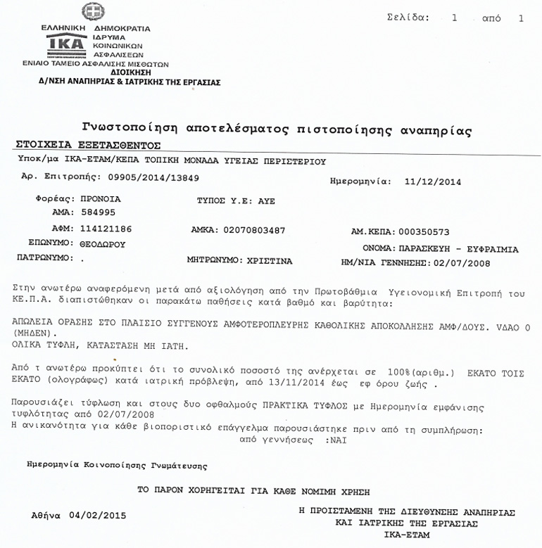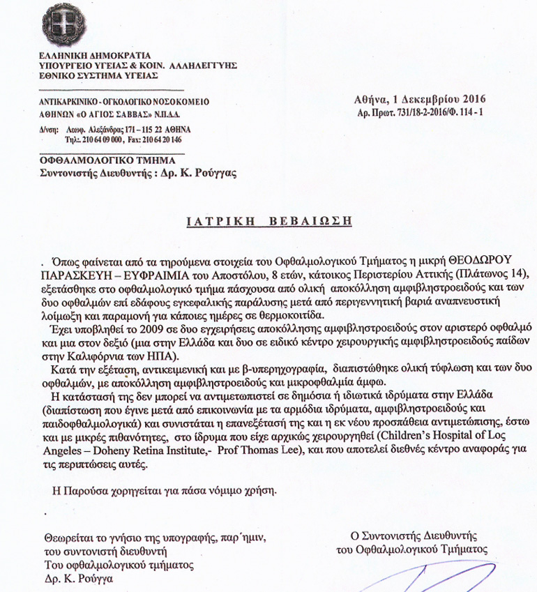 Ο πατέρας της προσπαθεί να συγκεντρώσει το ποσό των 102.000 δολαρίων για την Παρασκευή – Ευφραιμία.